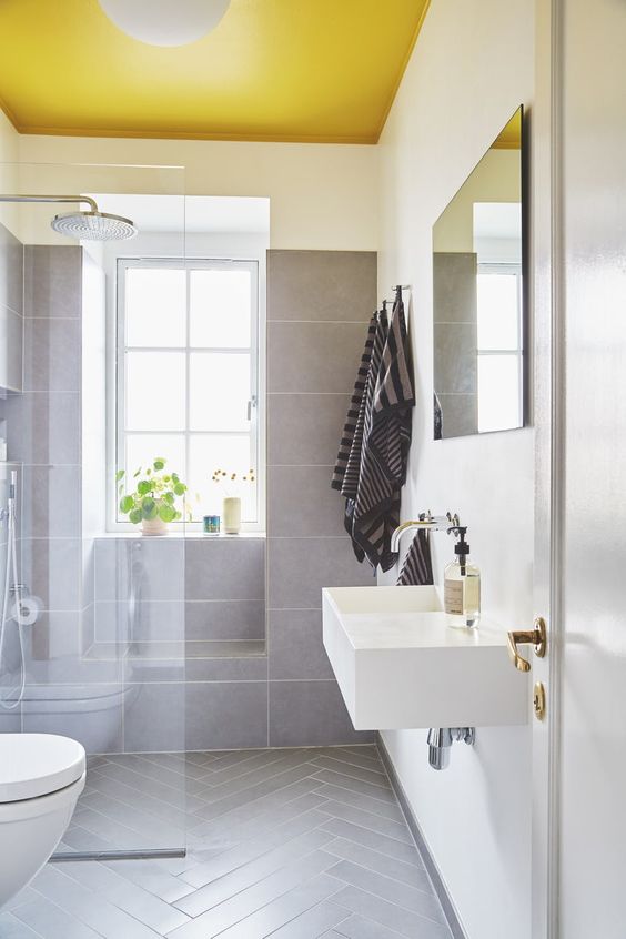 Als je het badkamer plafond wilt schilderen, moet je natuurlijk ook beslissen wat voor kleur plafond je wilt. Een populaire kleur voor een badkamer plafond is wit, omdat dit een neutrale en heldere uitstraling geeft en het past goed bij de meeste andere kleuren en materialen in de badkamer. Maar je bent natuurlijk vrij ook een andere kleur te nemen, wat soms een heel goed idee kan zijn, afhankelijk van de muurkleur in je badkamer. Twijfel je nog? Laat je inspireren door onderstaande mooie inspiratie voorbeelden.