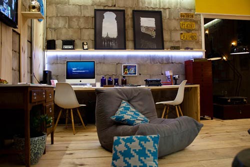 Er is vooral veel nagedacht over de technologie in deze woonkamer. Met slechts een tablet heb je hier controle over de elektronica in de gehele woonkamer. Denk aan de muziekinstallatie, video, verlichting, temperatuur, etc. Het is grappig om te zien dat de moderne technologie wordt gecombineerd met vintage elementen in deze woonkamer. De ouderwetse typemachine, de vintage televisie, antieke fotolijstje… Erg leuk gedaan!